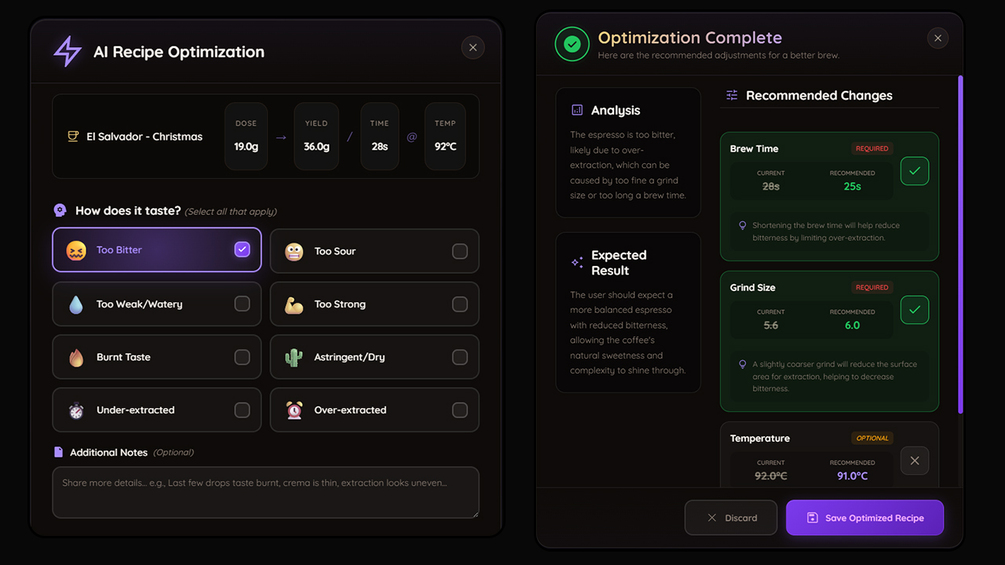 ✅ Smart Dial-In Assistant — Taste feedback → instant adjustments + learn why