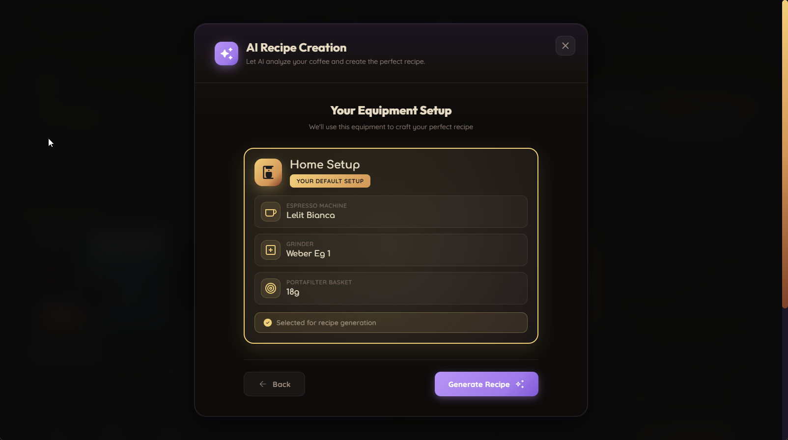 ✅ Equipment-Calibrated Recipes — Tailored to YOUR exact machine & grinder