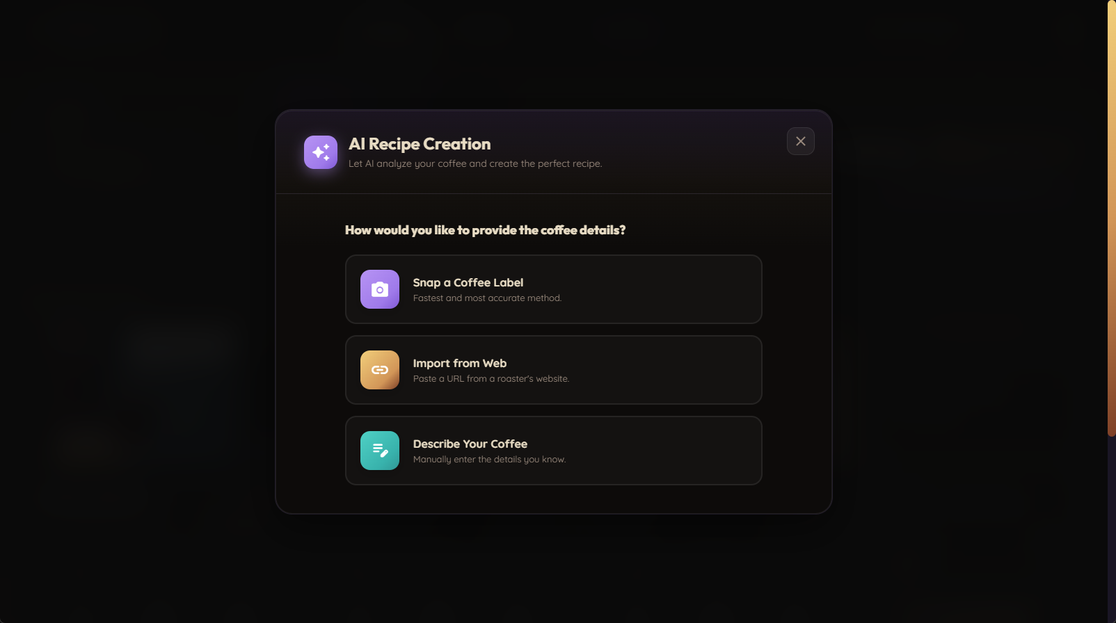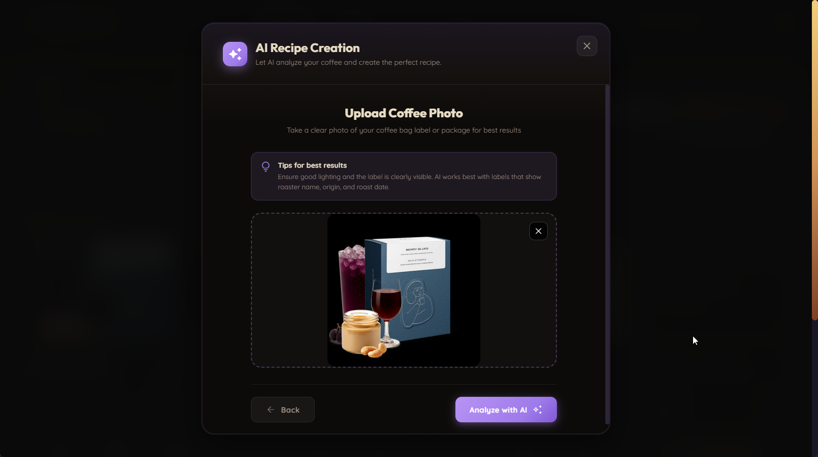 1. Scan Your Coffee Bag Snap a photo or paste a roaster URL. Lumo reads roast level, origin, and tasting notes automatically—no manual entry.